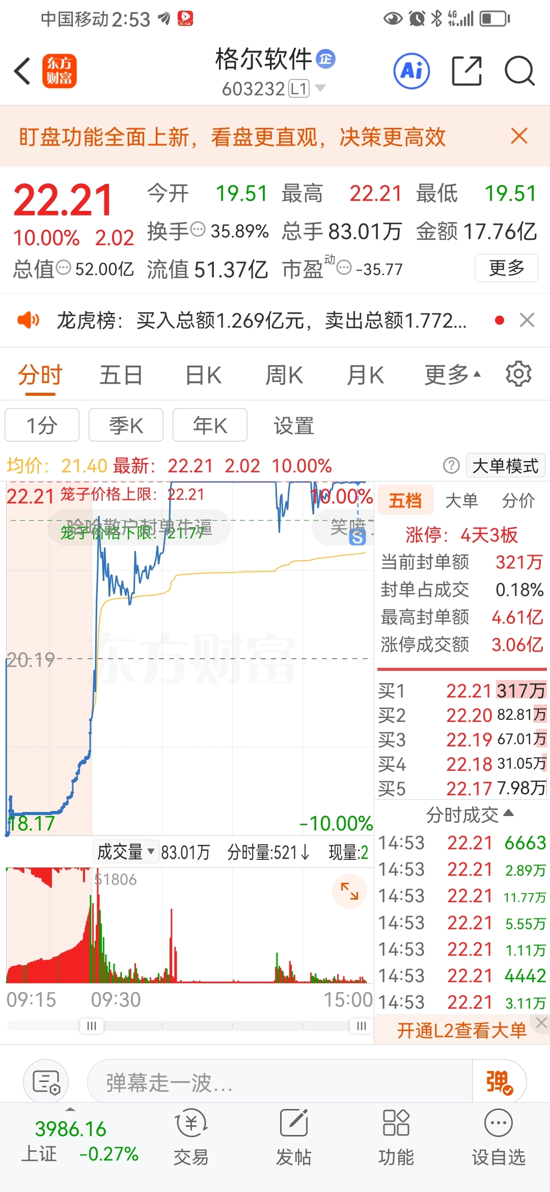 $格尔软件(SH603232)$ 烂掉了记得要跑不会错