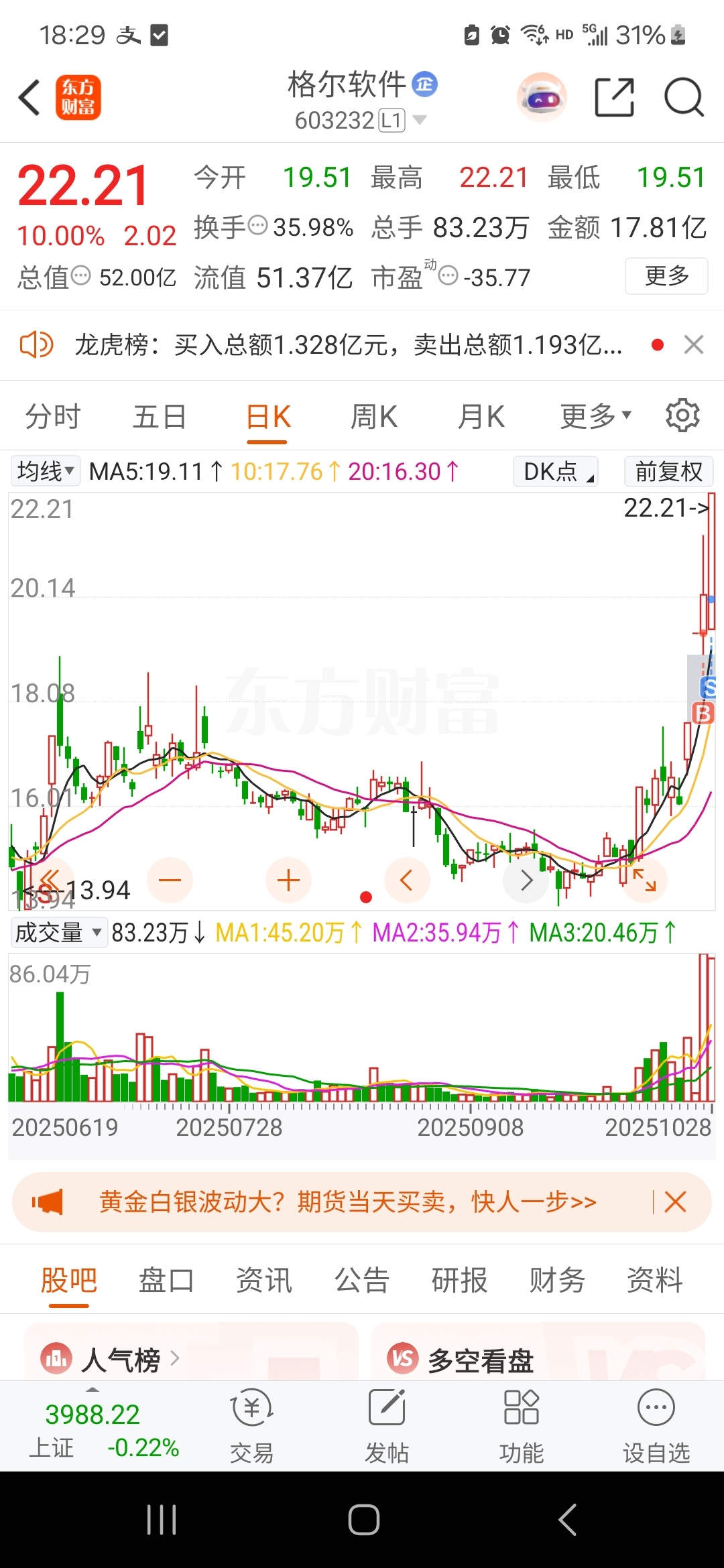 $格尔软件(SH603232)$ 我这个操作可以吗?兄弟们