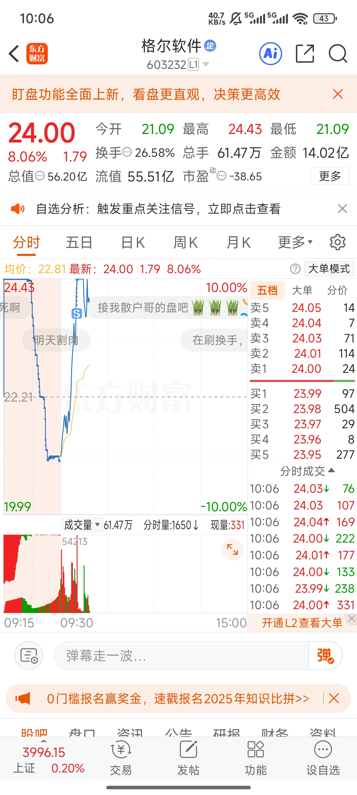 $格尔软件(SH603232)$ 吓死个人,吃完跑路~