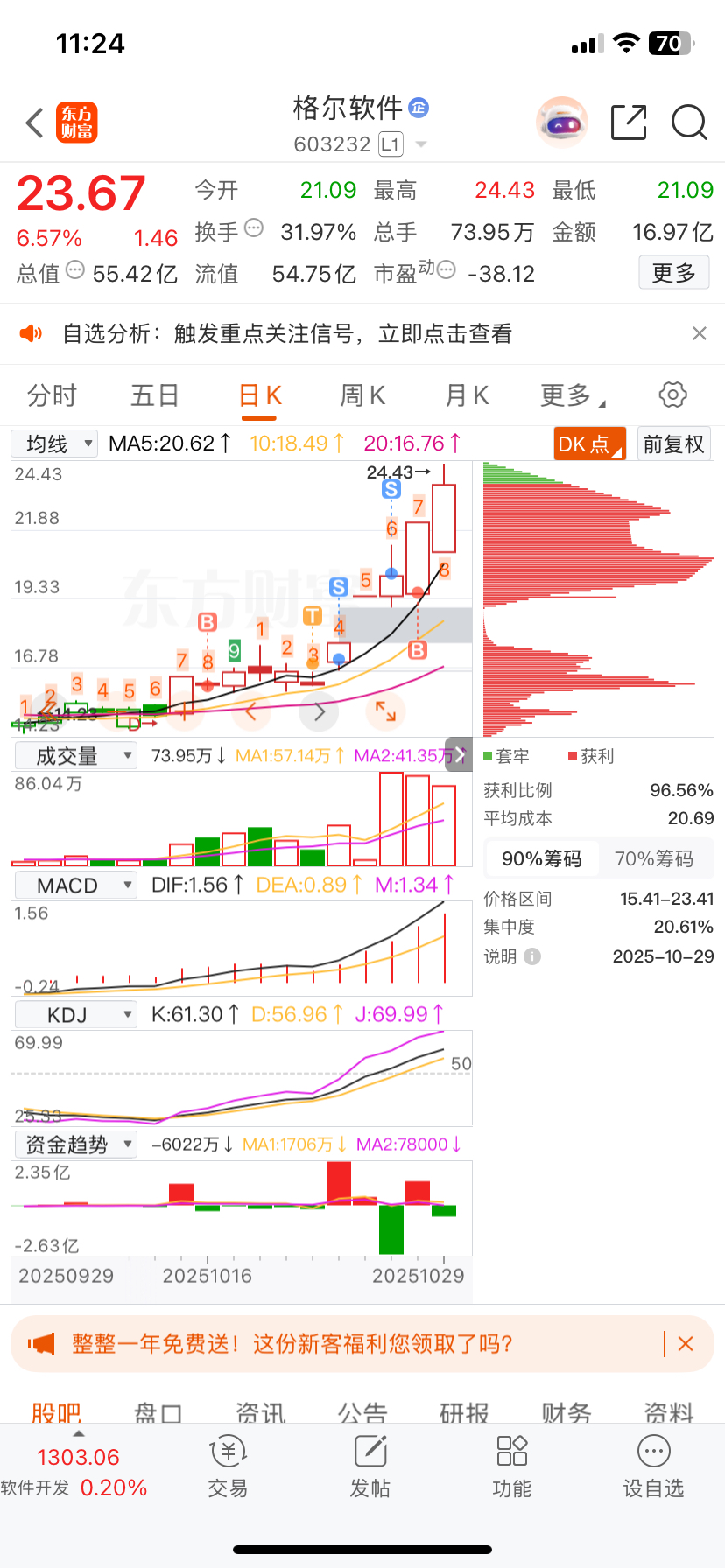 $格尔软件(SH603232)$ 随便洗盘,就是不走