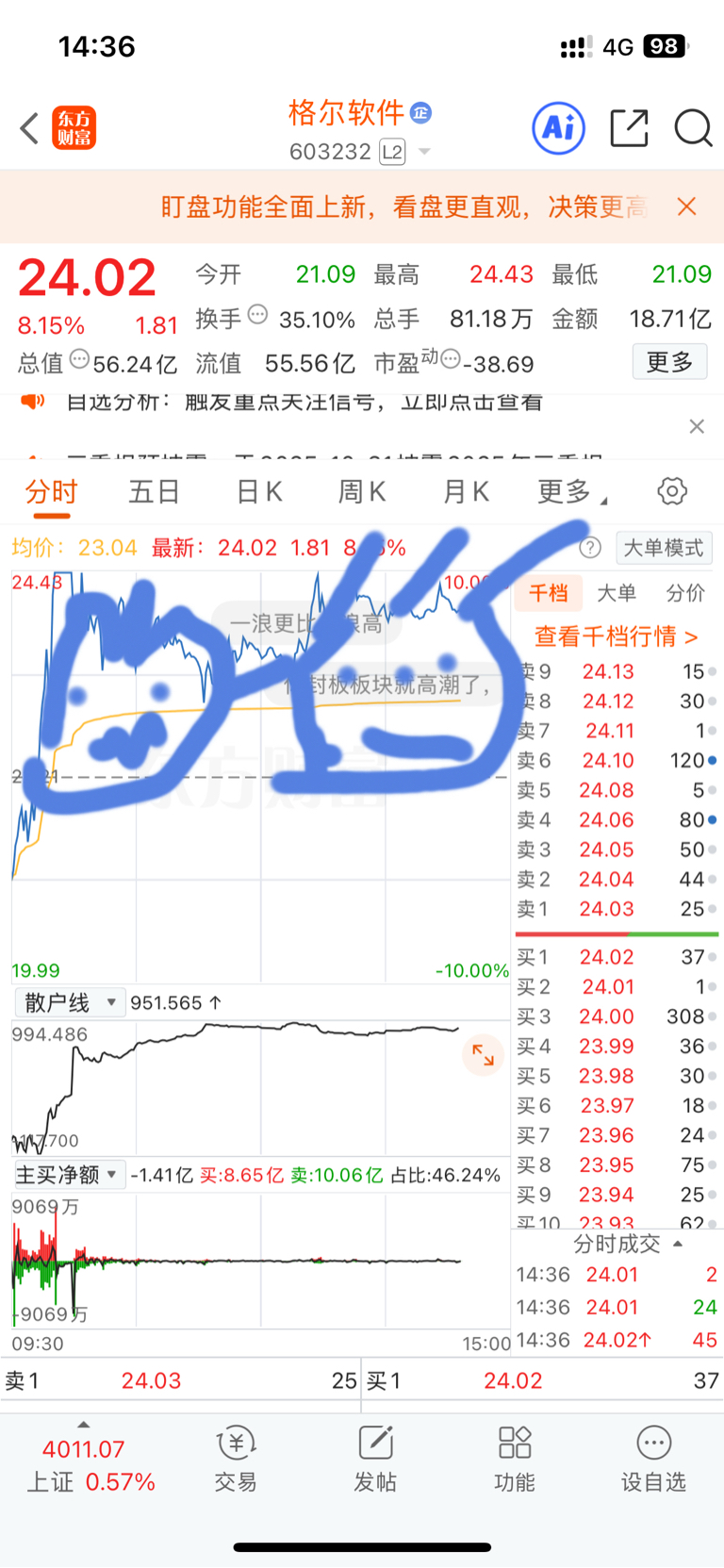 $格尔软件(SH603232)$ 大哥你在画海尔兄弟吗??