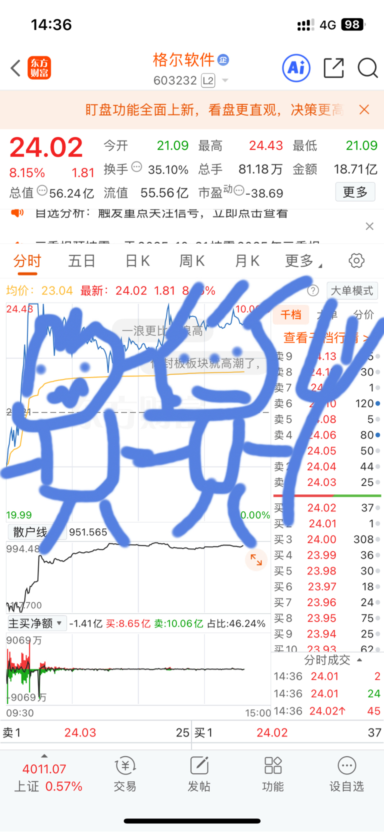 $格尔软件(SH603232)$ 海尔兄弟。。
