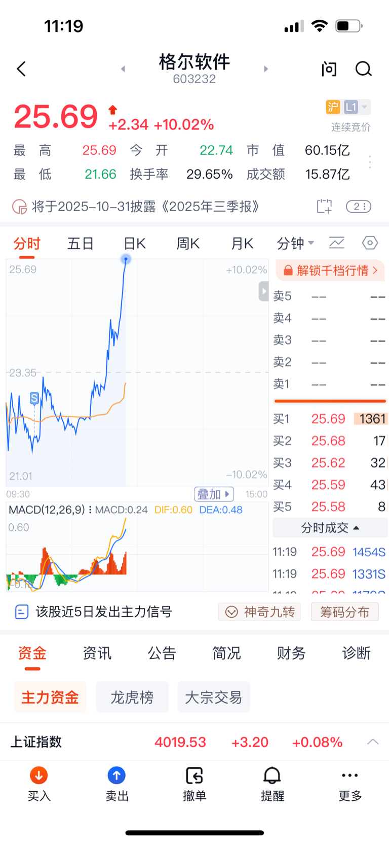 $格尔软件(SH603232)$ 被骗了卖飞了