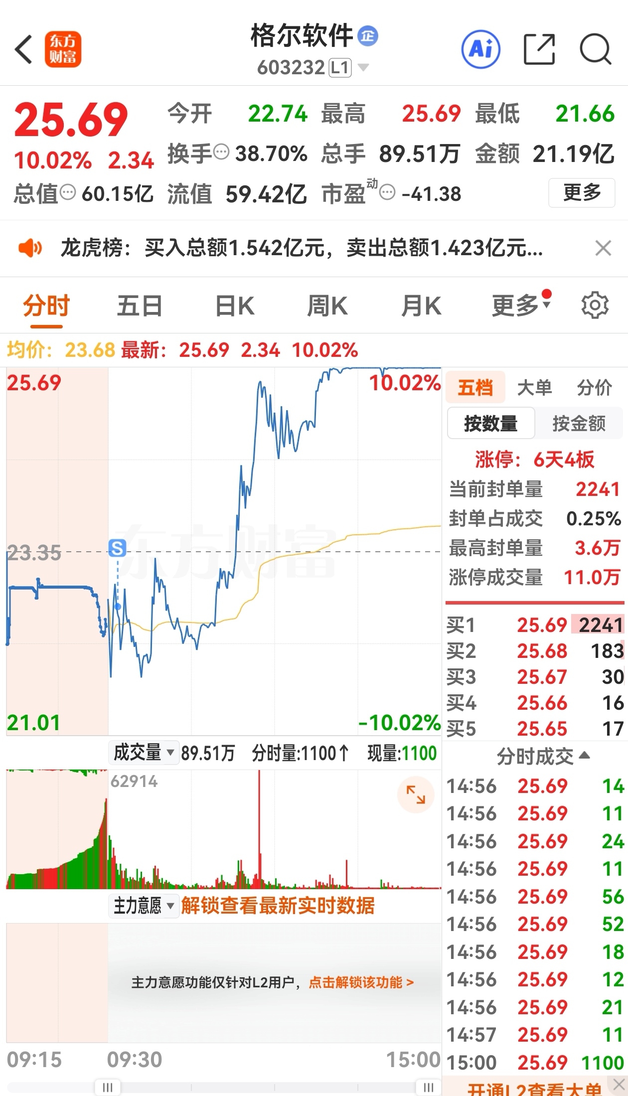 $格尔软件(SH603232)$ 卖飞,昨天认为会反包,没有贯彻到底,拍大腿。