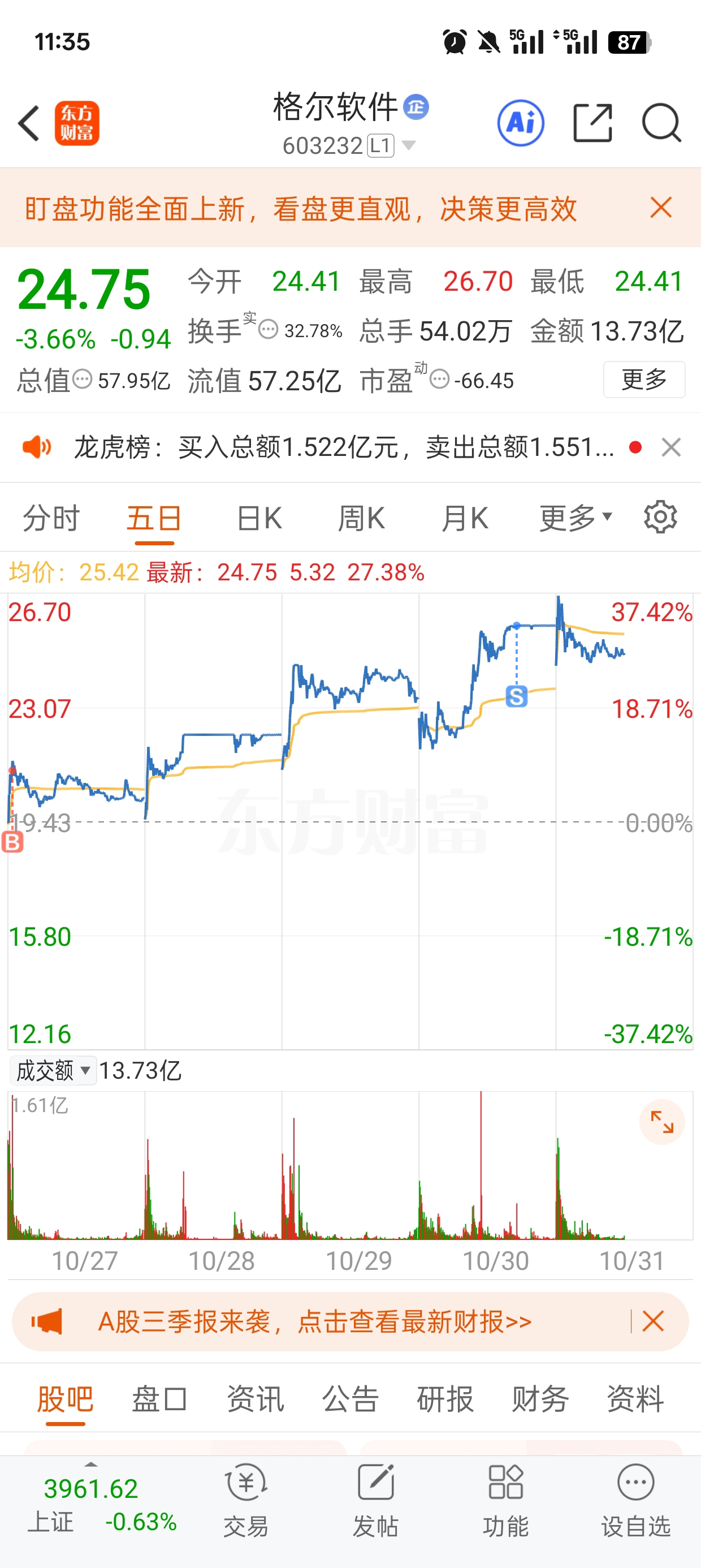 $格尔软件(SH603232)$ 不要想着吃最后一口#复盘记录#
