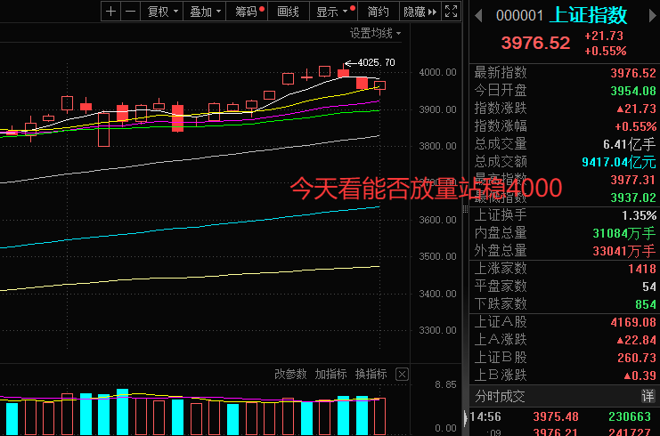 现在的市场就是震荡向上的走势居多,但是今天的反弹有两点需要注意一、市场是缩量反弹,没有明显进场Z金。二、就是反弹力度还是欠缺,没能反包周五连阴。所以现在说震荡结束还是有点早,起码收盘高于周五最高点3986点才会考虑震荡结束,同时最好是放量最好。当然现在老k认为还是按照趋势操作就好了。