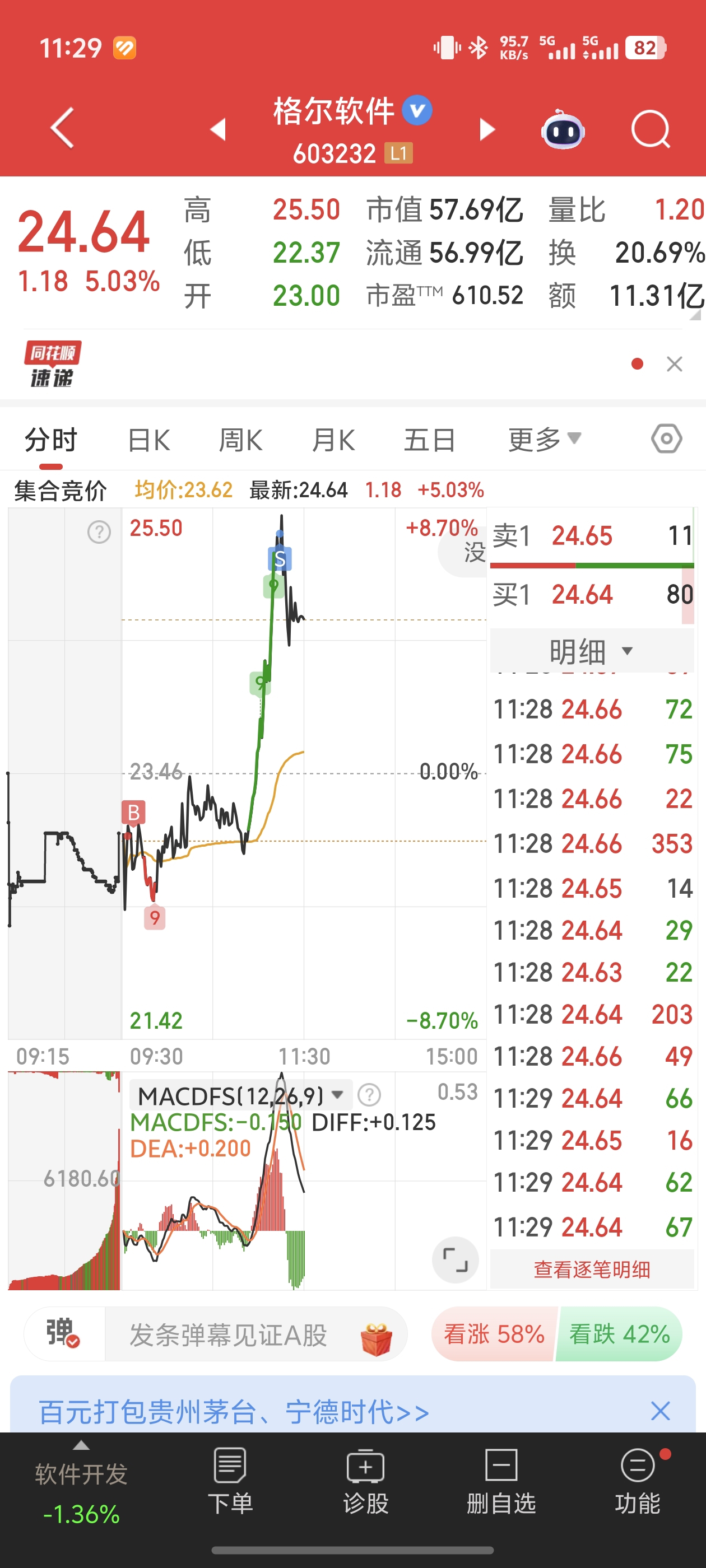 $格尔软件(SH603232)$ 昨天追高进的, 小t一下