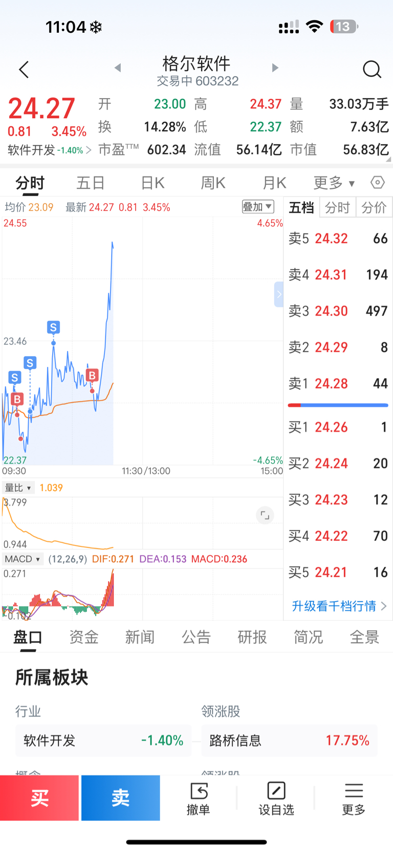 $格尔软件(SH603232)$ 我今天在水下把你T完了 哈哈哈 不过我还是很看好你的 没事 这个月格尔必然是重点关注领域 我就是死拿不走
