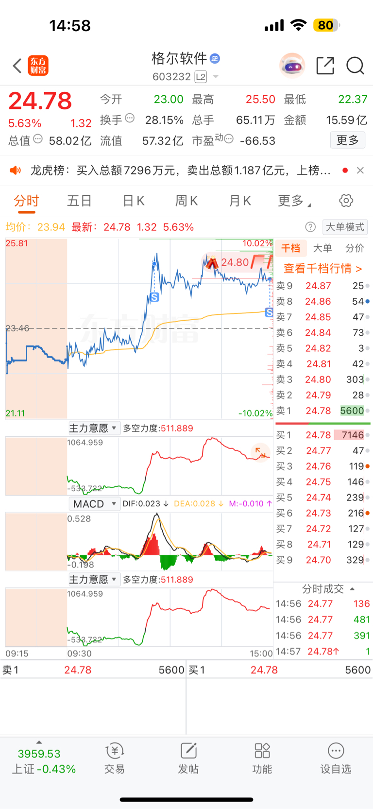 $格尔软件(SH603232)$ 走了、兄弟们、留下的发财。