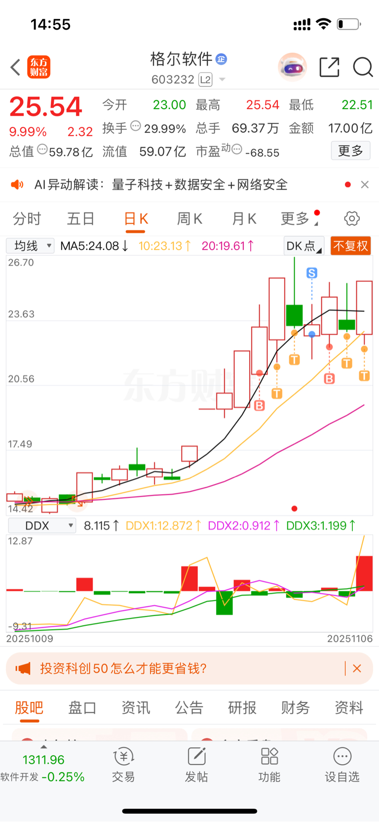 $格尔软件(SH603232)$ 第一次21.15买 来回做T成本17.95咯 可惜股份不多