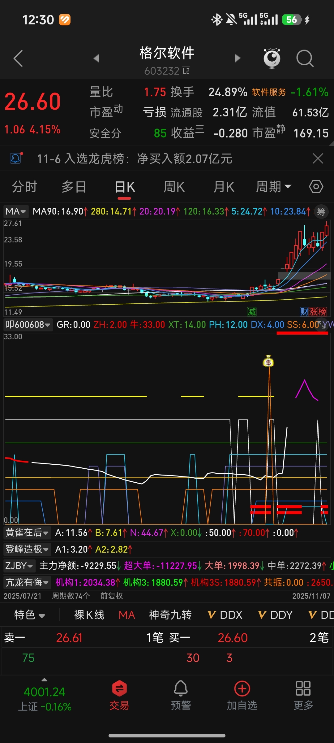 $格尔软件(SH603232)$ 5000票唯一之格尔软件