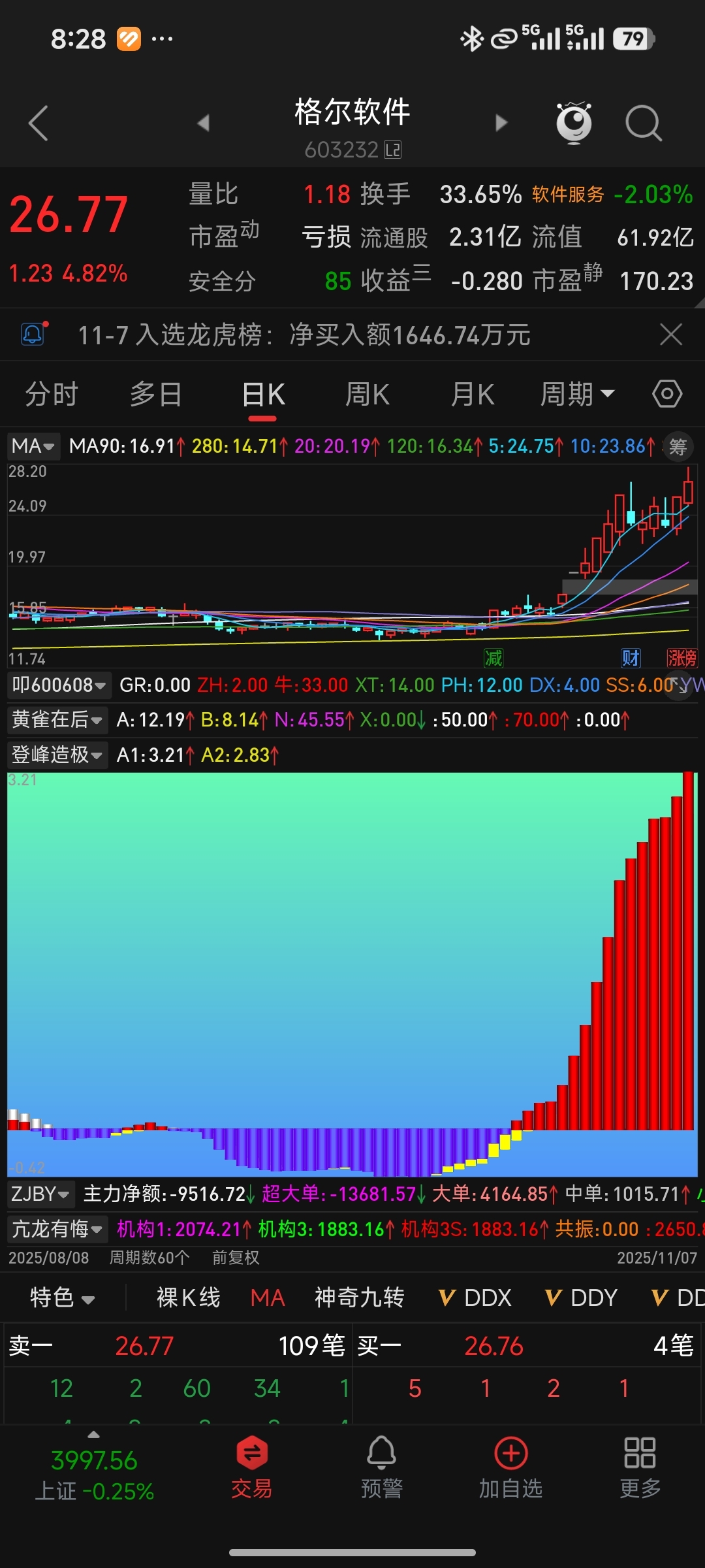 $格尔软件(SH603232)$ 5000票唯一之格尔软件