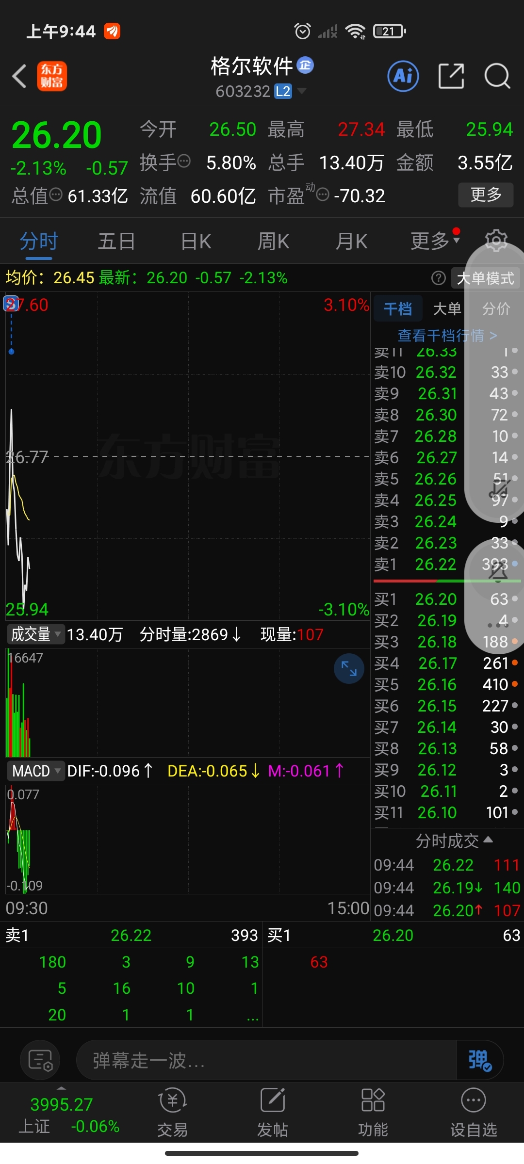 $格尔软件(SH603232)$ 27.30全仓卖,-7.7个点,全仓买,气死主力