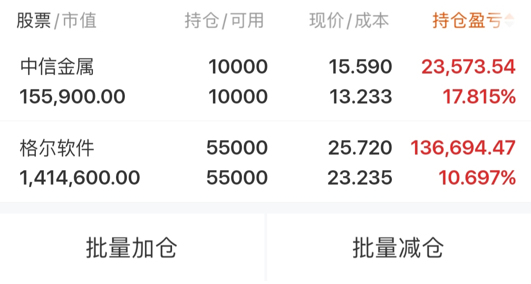 持有:$格尔软件(SH603232)$ $中信金属(SH601061)$