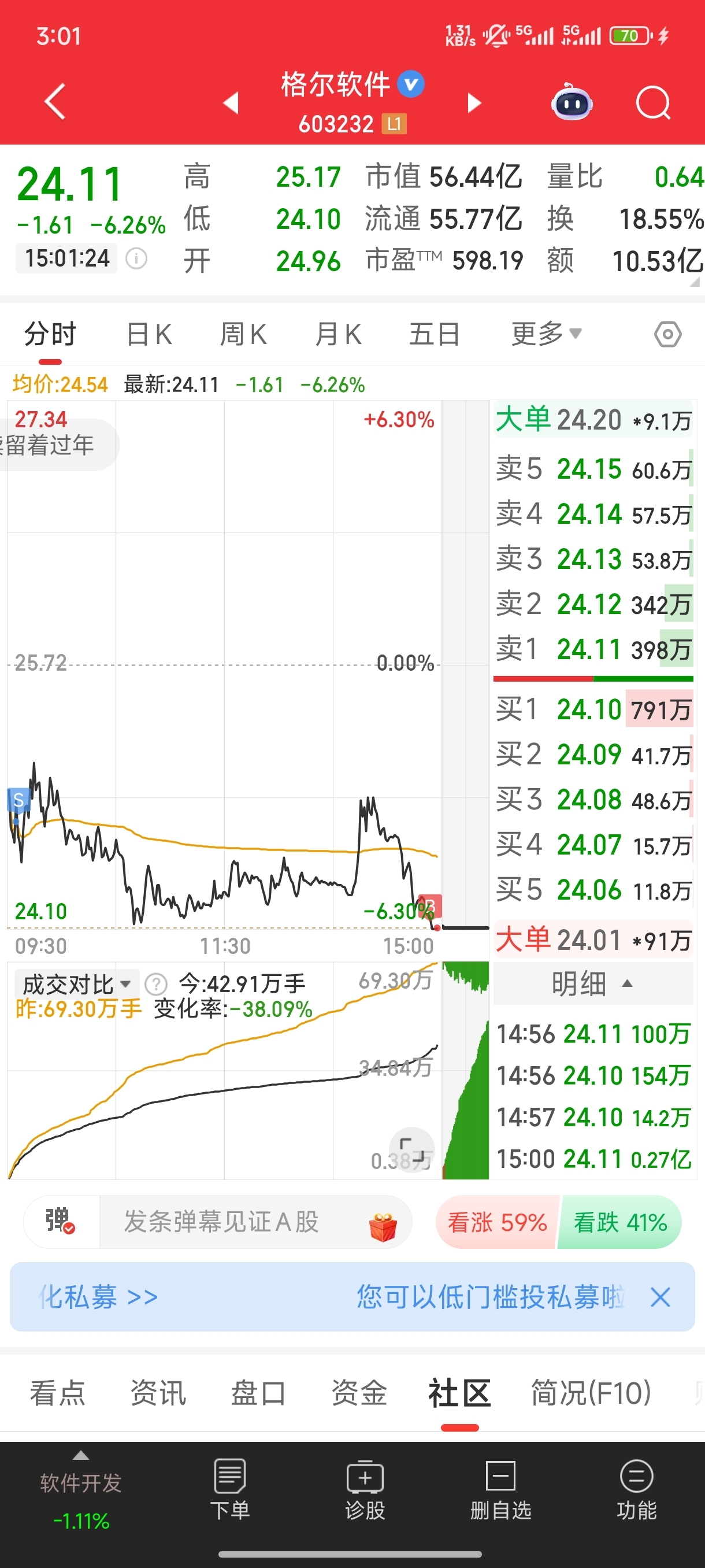 $格尔软件(SH603232)$ 哎,尾盘集合竞价接回来了,少亏点!