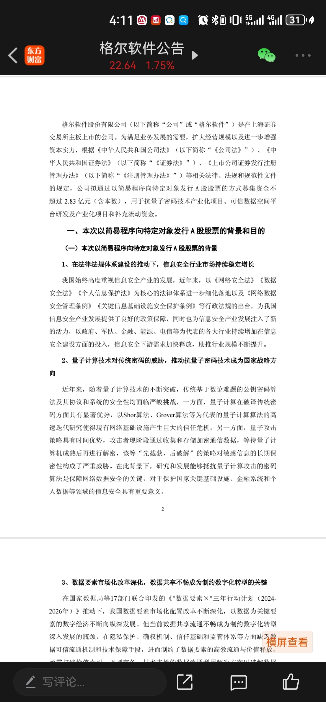 $格尔软件(SH603232)$ 继续投钱搞抗量子密码