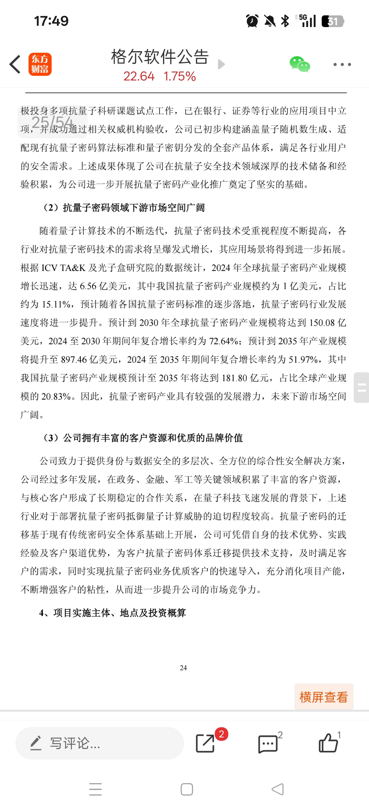 抗量子市场规模太大了,向下空间有限,向上空间无限
