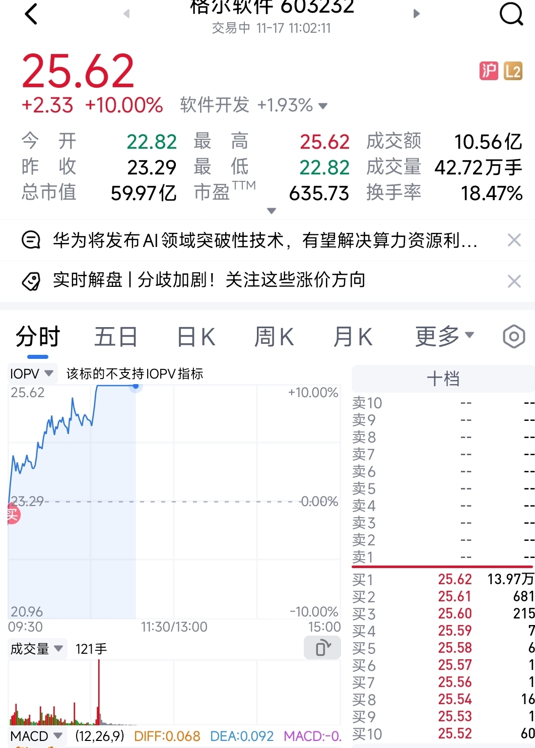 $格尔软件(SH603232)$ 感谢主力拉涨停!