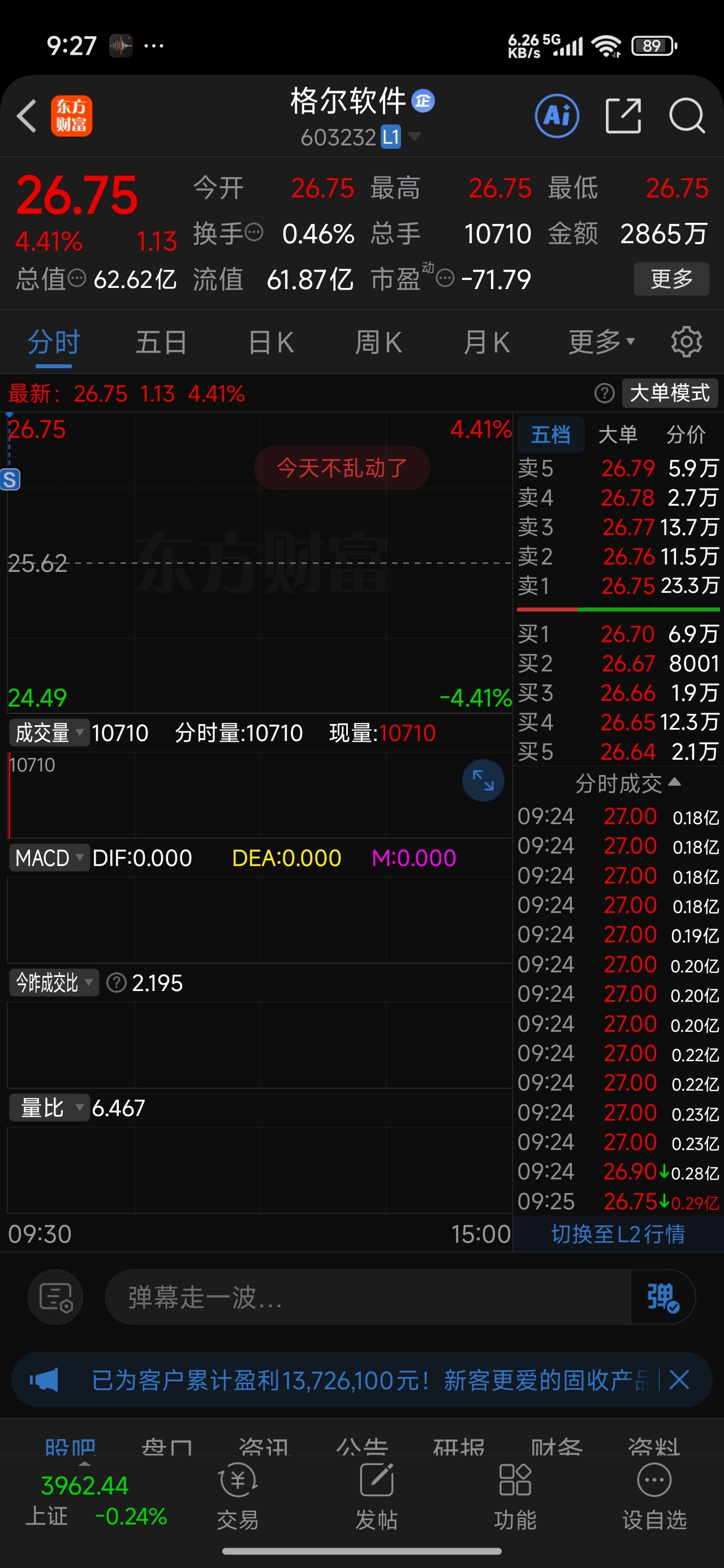 $格尔软件(SH603232)$ 兑现,稳赚,高抛,低吸!