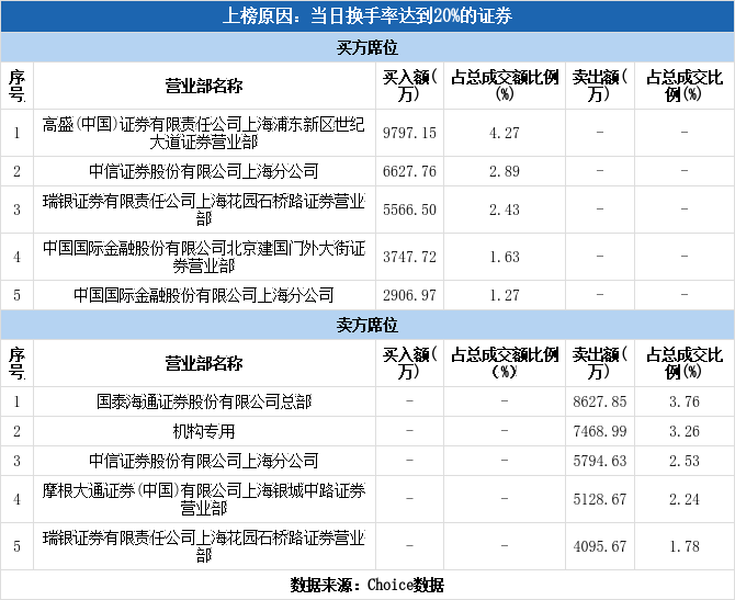 机构现身龙虎榜,格尔软件换手率达35.20%(11-19)