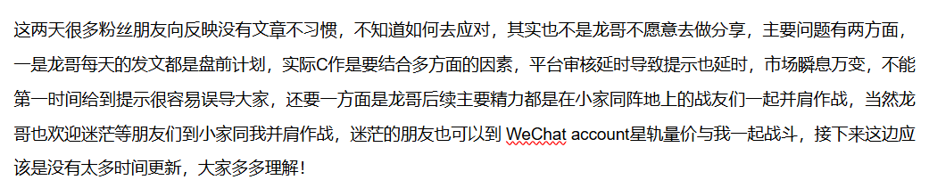 郑重声明:用户在财富号/股吧/博客等社区发表的所有信息(包括但不限于文字、视频、音频、数据及图表)仅代表个人观点,与本网站立场无关,不对您构成任何投资建议,据此操作风险自担。请勿相信代客理财、免费荐股和炒股培训等宣传内容,远离非法证券活动。请勿添加发言用户的手机号码、公众号、微博、微信及QQ等信息,谨防上当受骗!