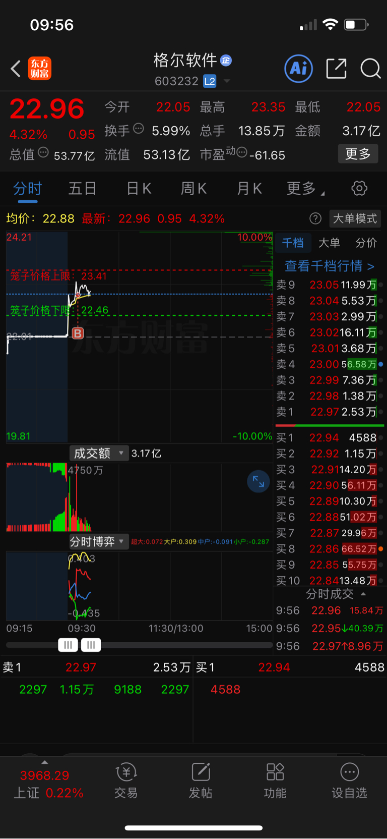 今天操作格尔22.89买入。九牧王后面亏5个点全部清仓。(非理性操作请勿模仿)