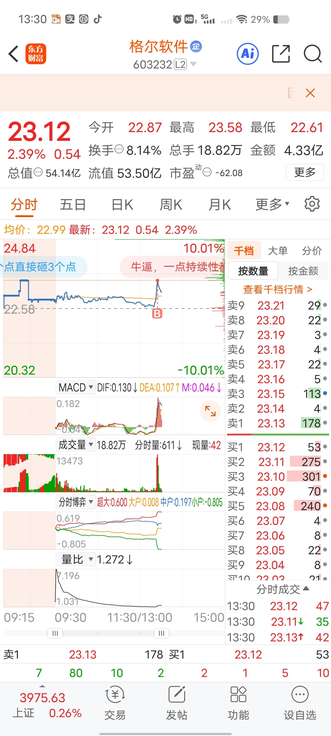 $格尔软件(SH603232)$ 挂天上,可以安心过节了
