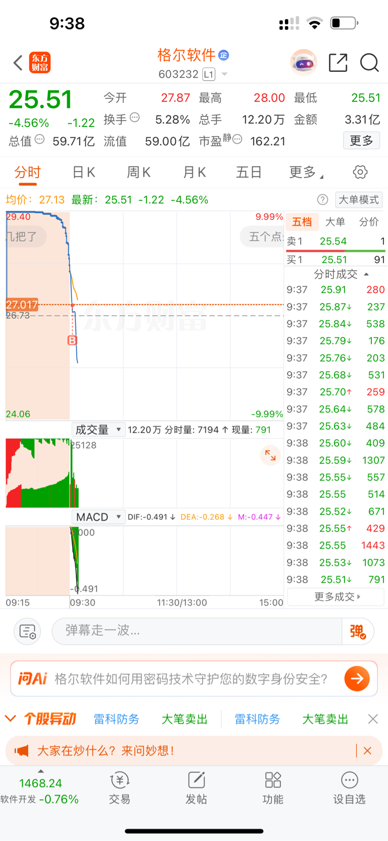 $格尔软件(SH603232)$ 我一个滑铲
