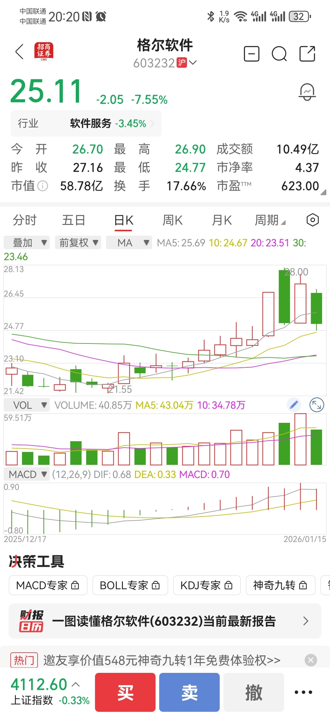 $格尔软件(SH603232)$ 一片看跌的如此狼狈不堪。所有人都恐惧的时候是好事。买了1000股验证,等跌停就跑#炒股日记#