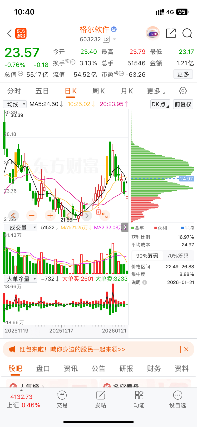 $格尔软件(SH603232)$ 盈利15个点没走,倒亏3个点,这庄真牛