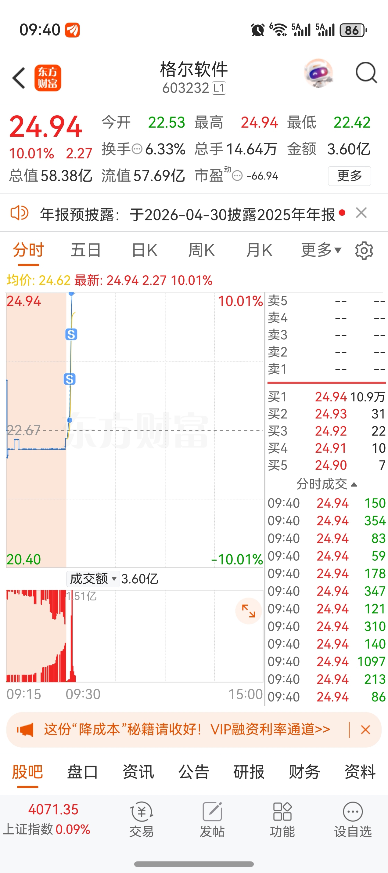 $格尔软件(SH603232)$ 感谢主力,祝里面的兄弟不停涨。涨不停