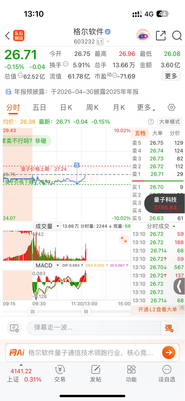 $格尔软件(SH603232)$ 你们欠我一声谢谢