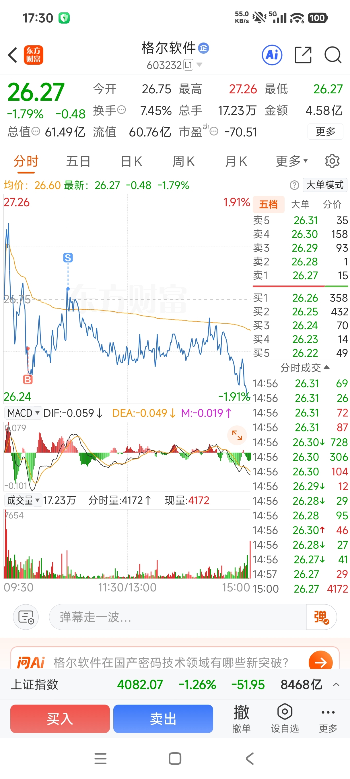 $格尔软件(SH603232)$ 年后交易日都清了,不会把资金浪费在这个票里面,除非刘谦的魔术超预期!