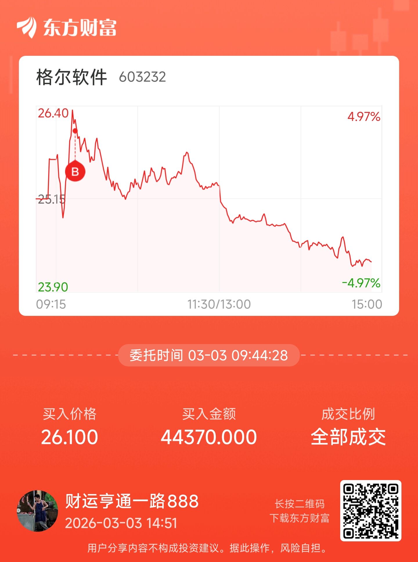 温馨提示: 1.根据《证券法》规定,禁止编造、传播虚假信息或者误导性信息,扰乱证券市场;2.用户在本社区发表的所有资料、言论等仅代表个人观点,与本网站立场无关,不对您构成任何投资建议。用户应基于自己的独立判断,自行决定证券投资并承担相应风险。《东方财富社区管理规定》