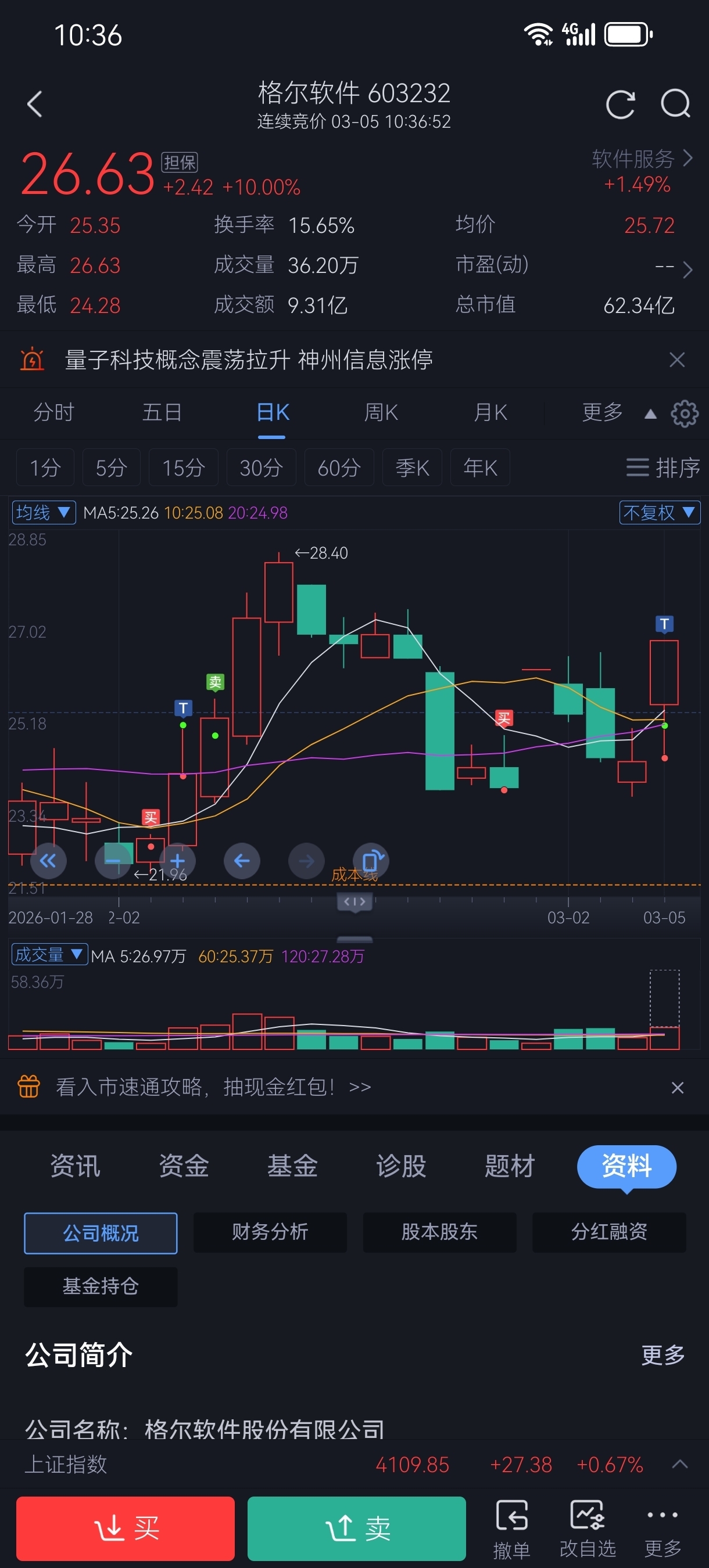 $格尔软件(SH603232)$ 做了个小T。成本讲到了21.75。想去想来,还是别乱动了。差点T飞了。