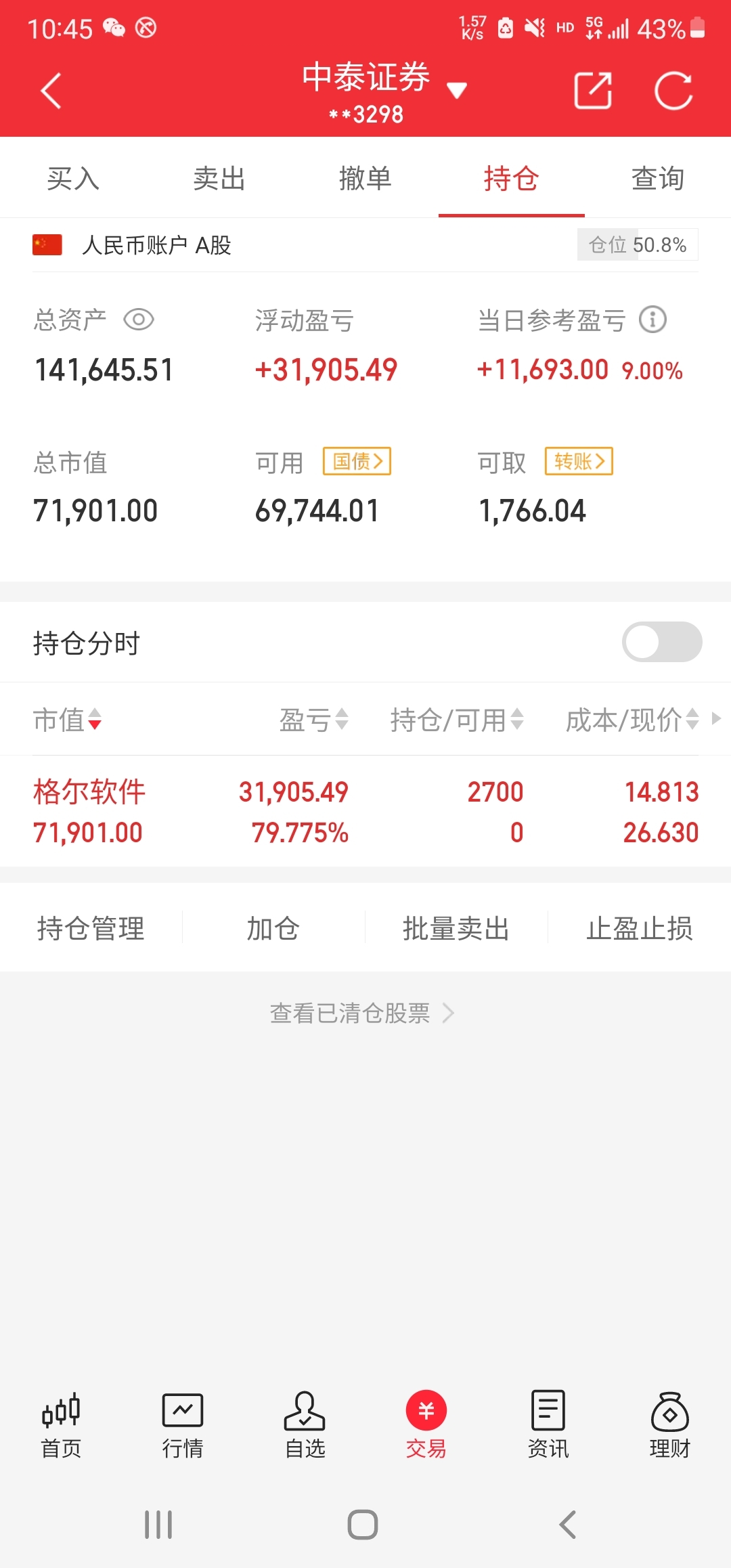 $格尔软件(SH603232)$ 做了一大堆T 结果发现卖飞了一半 而且还少了一个点