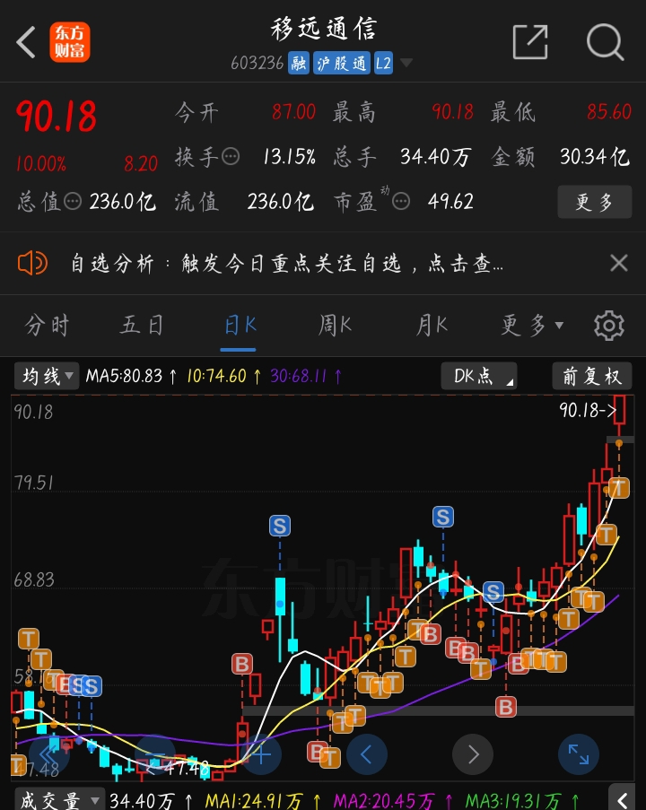 $移远通信(SH603236)$ 你能看到我的成本线吗!