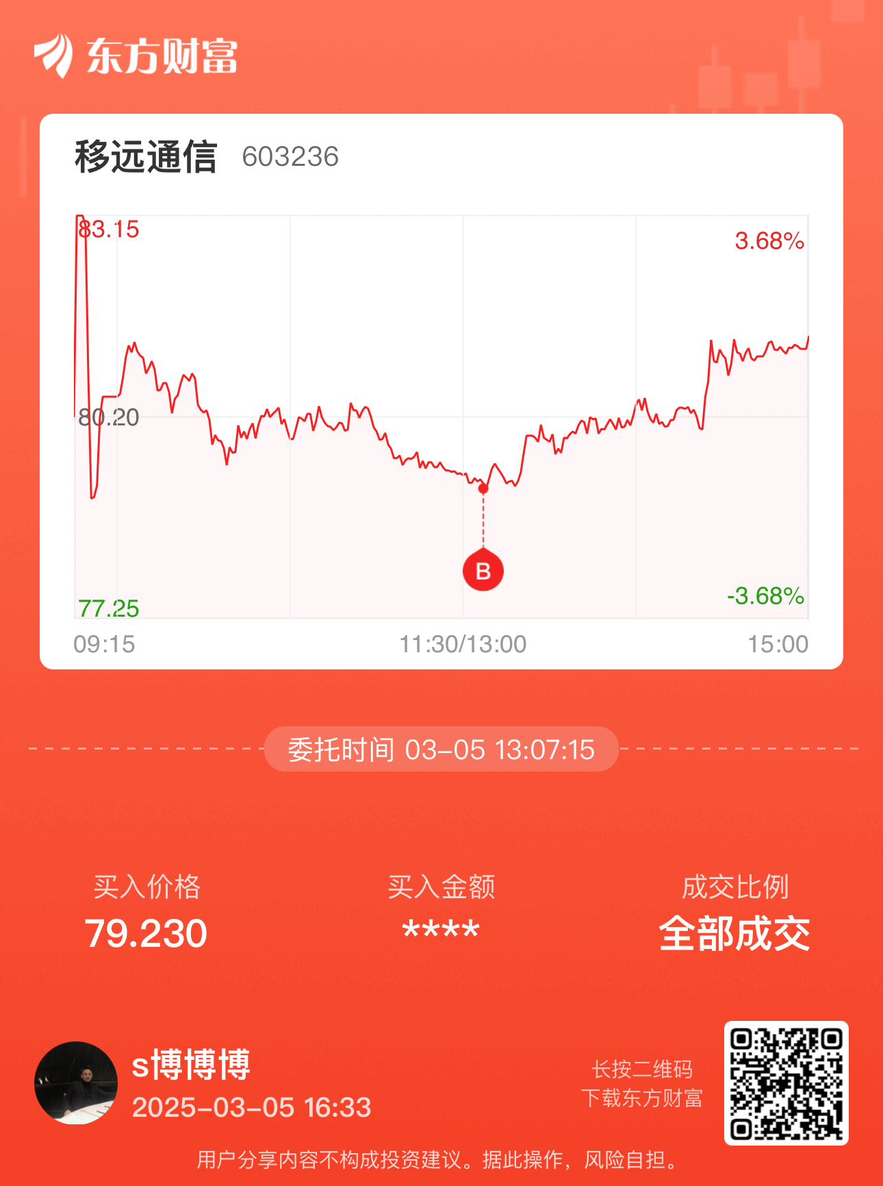 温馨提示: 1.根据《证券法》规定,禁止编造、传播虚假信息或者误导性信息,扰乱证券市场;2.用户在本社区发表的所有资料、言论等仅代表个人观点,与本网站立场无关,不对您构成任何投资建议。用户应基于自己的独立判断,自行决定证券投资并承担相应风险。《东方财富社区管理规定》