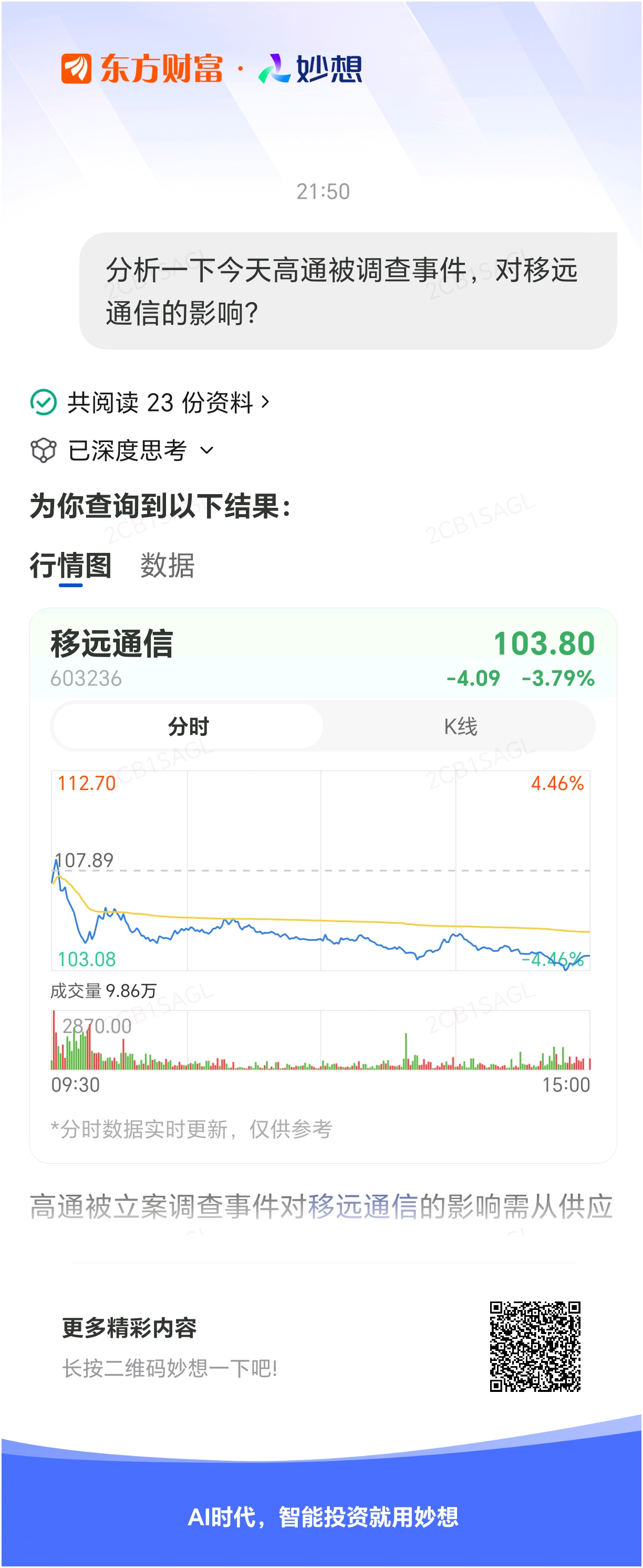 #@妙想,你怎么看?# 妙想一下:分析一下今天高通被调查事件,对移远通信的影响?