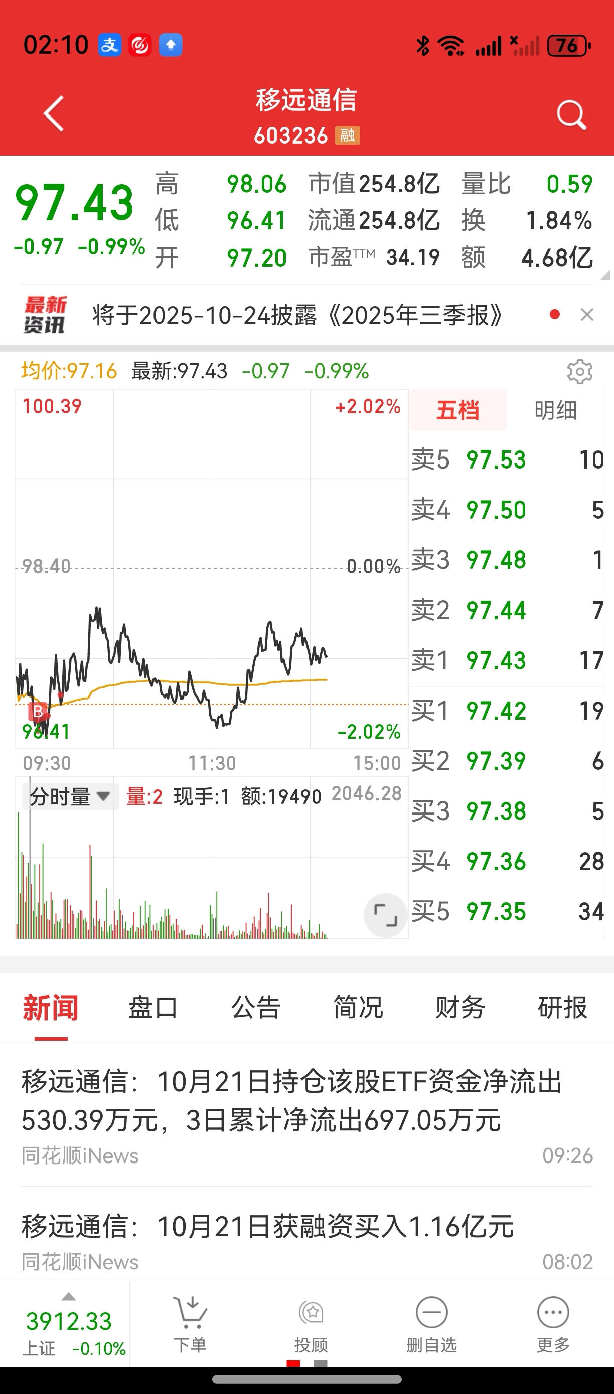 $移远通信(SH603236)$ 看好3季报每股收益2元以上,买入。