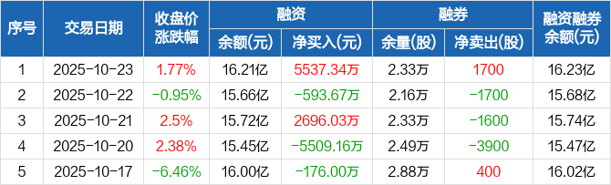 移远通信:融资净买入5537.34万元,融资余额16.21亿元(10-23)
