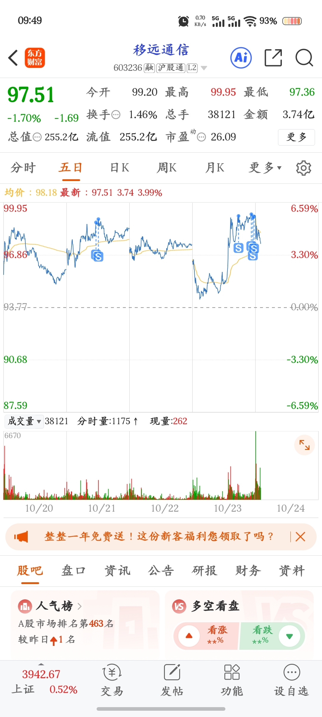 $移远通信(SH603236)$ 我就知道低开,幸亏昨天全卖了。今天看情况再买