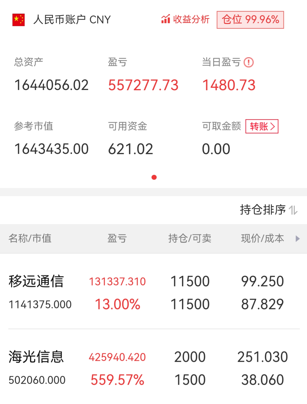 一百多的持仓,红了一千多,其中1k还是踢出来的,我怀疑主力是在逗我