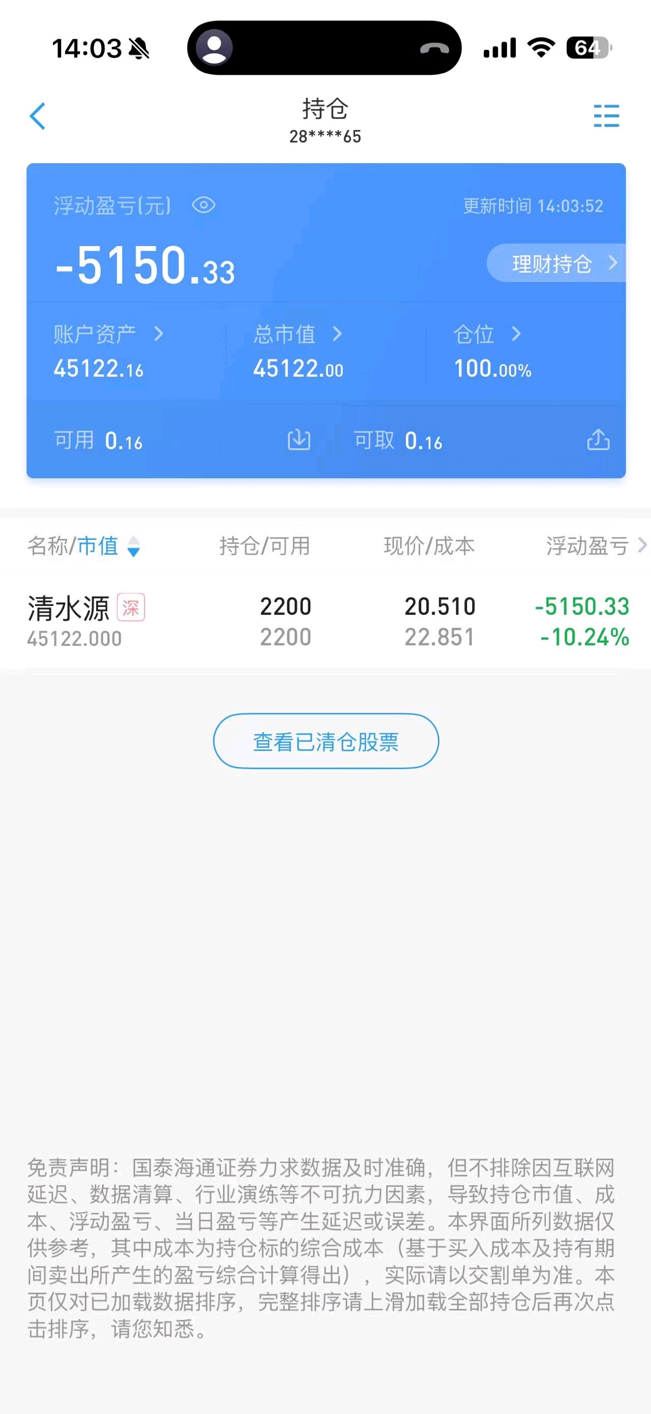 3236这点跌幅算啥,我三年前买的清水源,跌到6,也没动,单独为它开的账号,沉睡