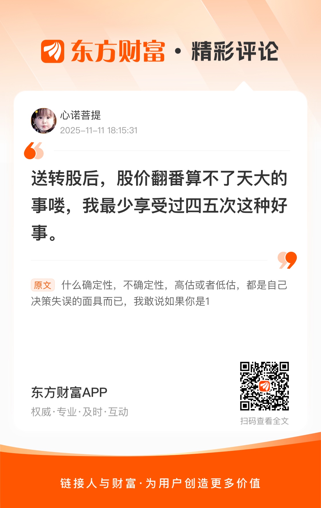 郑重声明:用户在财富号/股吧/博客等社区发表的所有信息(包括但不限于文字、视频、音频、数据及图表)仅代表个人观点,与本网站立场无关,不对您构成任何投资建议,据此操作风险自担。请勿相信代客理财、免费荐股和炒股培训等宣传内容,远离非法证券活动。请勿添加发言用户的手机号码、公众号、微博、微信及QQ等信息,谨防上当受骗!