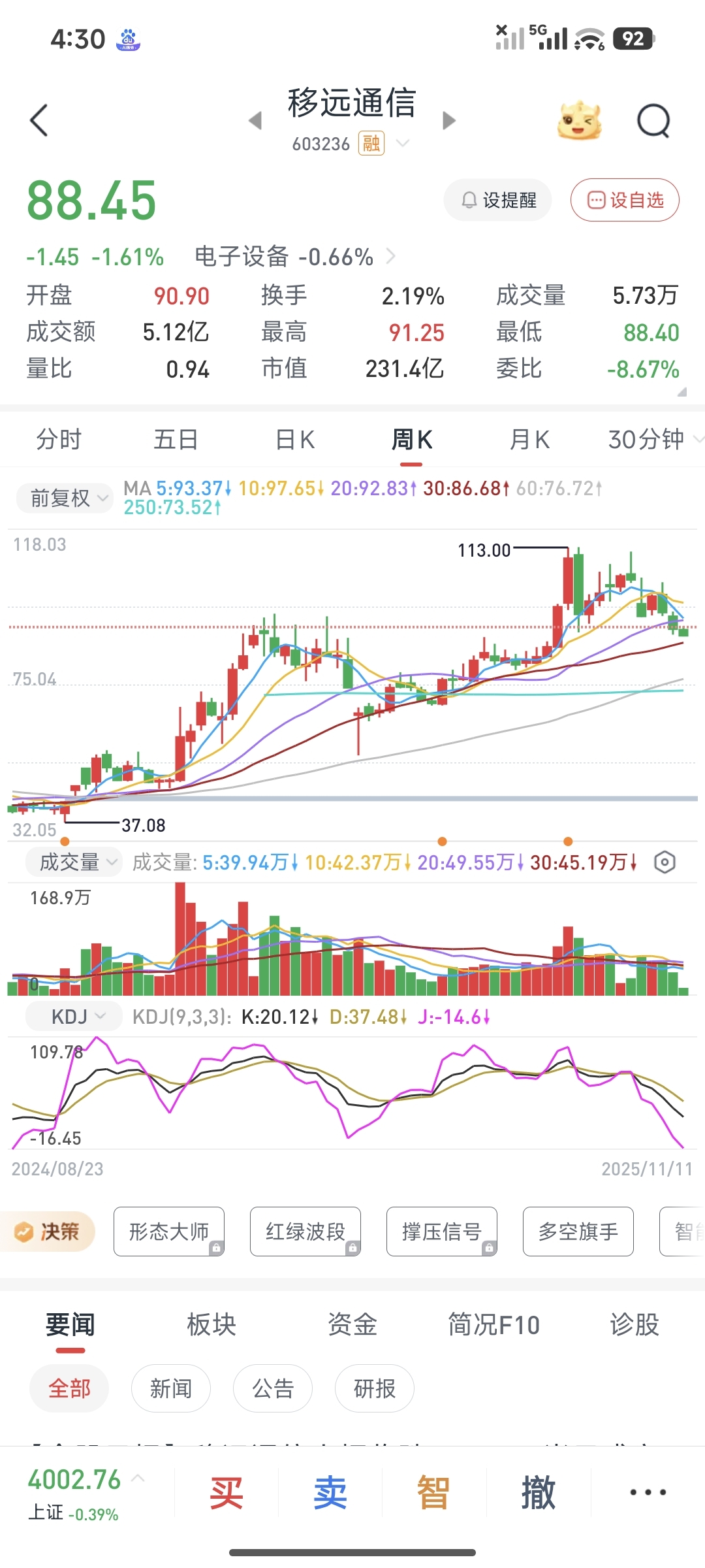 $移远通信(SH603236)$ 什么确定性,不确定性,高估或者低估,都是自己决策失误的面具而已,我敢说如果你是113买的移远,必定是另外一座山换过来而已,或许那座山涨的更高,以为移远涨的少,什么拖不拖的,涨的时候赚的时候,拖不见了,跌的时候都是拖,人性不足靠成见弥补。