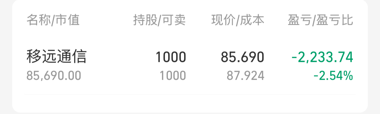 $移远通信(SH603236)$ 我87买入,亏损是暂时的。我的目标其实是看到200块钱的价格!大家与我一起冲锋!跟随着古田老师走向胜利!