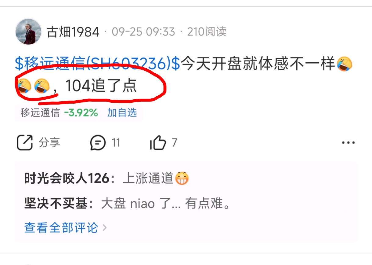 来来来,看看这货的操作吧,永远买在最高点,我84买移远93卖出总比104元追移远