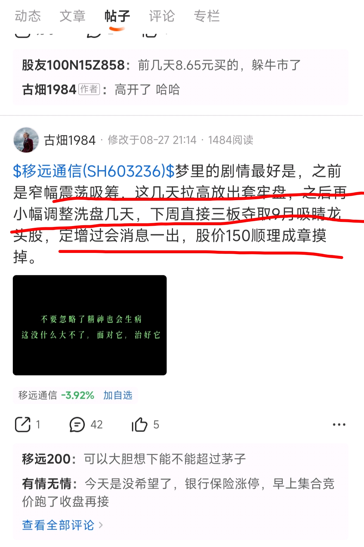 郑重声明:用户在财富号/股吧/博客等社区发表的所有信息(包括但不限于文字、视频、音频、数据及图表)仅代表个人观点,与本网站立场无关,不对您构成任何投资建议,据此操作风险自担。请勿相信代客理财、免费荐股和炒股培训等宣传内容,远离非法证券活动。请勿添加发言用户的手机号码、公众号、微博、微信及QQ等信息,谨防上当受骗!
