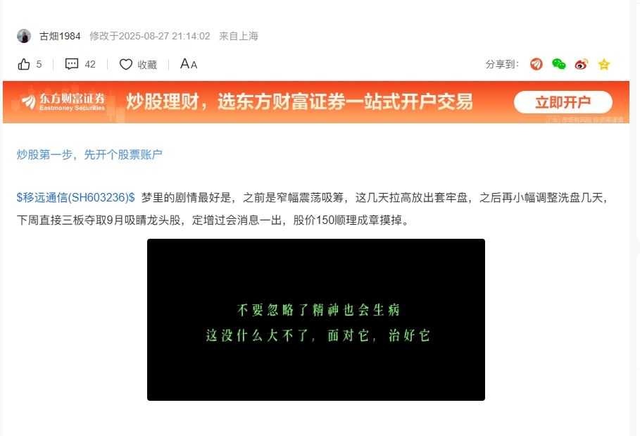 温馨提示: 1.根据《证券法》规定,禁止编造、传播虚假信息或者误导性信息,扰乱证券市场;2.用户在本社区发表的所有资料、言论等仅代表个人观点,与本网站立场无关,不对您构成任何投资建议。用户应基于自己的独立判断,自行决定证券投资并承担相应风险。《东方财富社区管理规定》